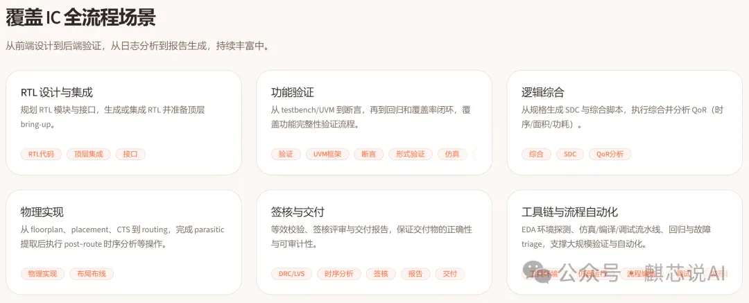 先说我们是谁:中科麒芯,团队来自中科南京智能技术研究院,在半导体行业干了 20 多年,服务过数千家中小 IC 设计公司。我们不是做通用 AI 工具的,我们只做芯片研发工程师用的 AI。