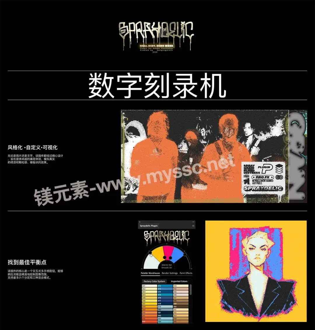 PS插件:一键式复古嘻哈粗糙垃圾摇滚风格喷漆涂鸦颗粒感特效PS Spraydelic Photoshop Plugin v1.0.0