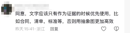 “同意,文字应该只有作为证据的时候优先使用,比如合同、清单、标准等,否则用抽象图更加高效。”