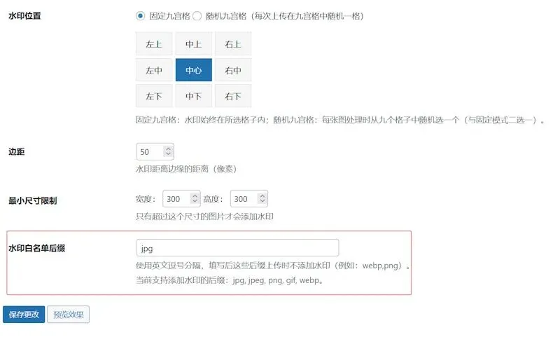 WPWaterMark水印插件支持WebP后缀且添加白名单功能