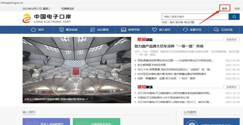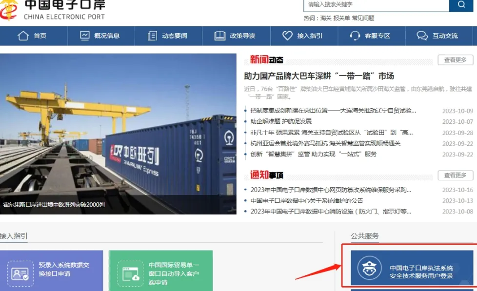 点击「中国电子口岸执法系统安全技术服务用户登录」