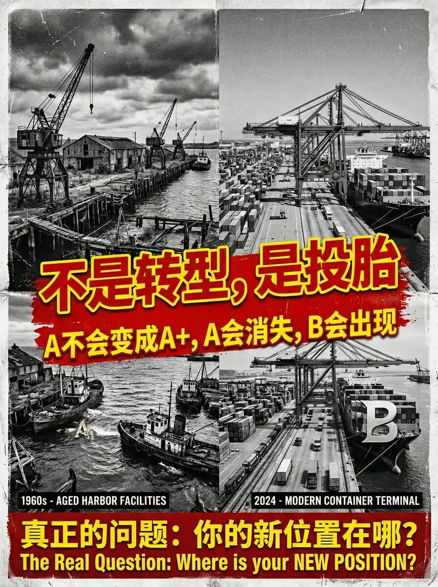 规律很清楚:每一个在集装箱时代赢下位置的港口,要么是从零建的,要么是把自己推倒重建的。没有一个是”在旧框架里把集装箱用得最好”的老港口。