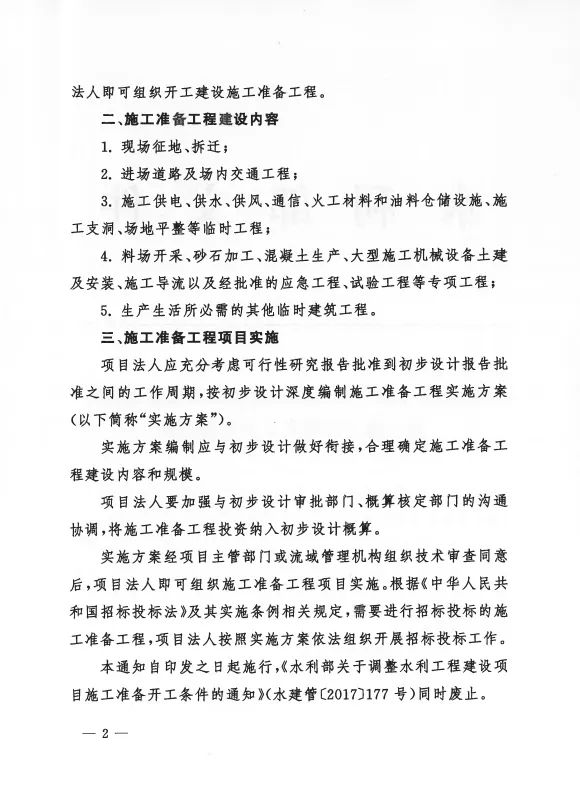 水利部关于进一步优化调整水利工程建设项目施工准备工程开工条件的通知