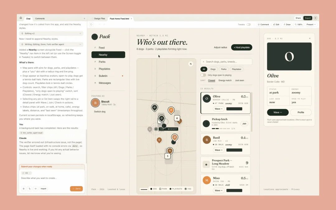 第二条路,是Claude Design代表的对话式生成。 2026年4月17日,Anthropic正式发布Claude Design。