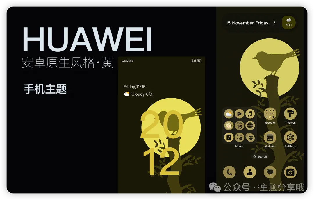 华为荣耀主题|原生安卓Pixel风格·黄手机主题