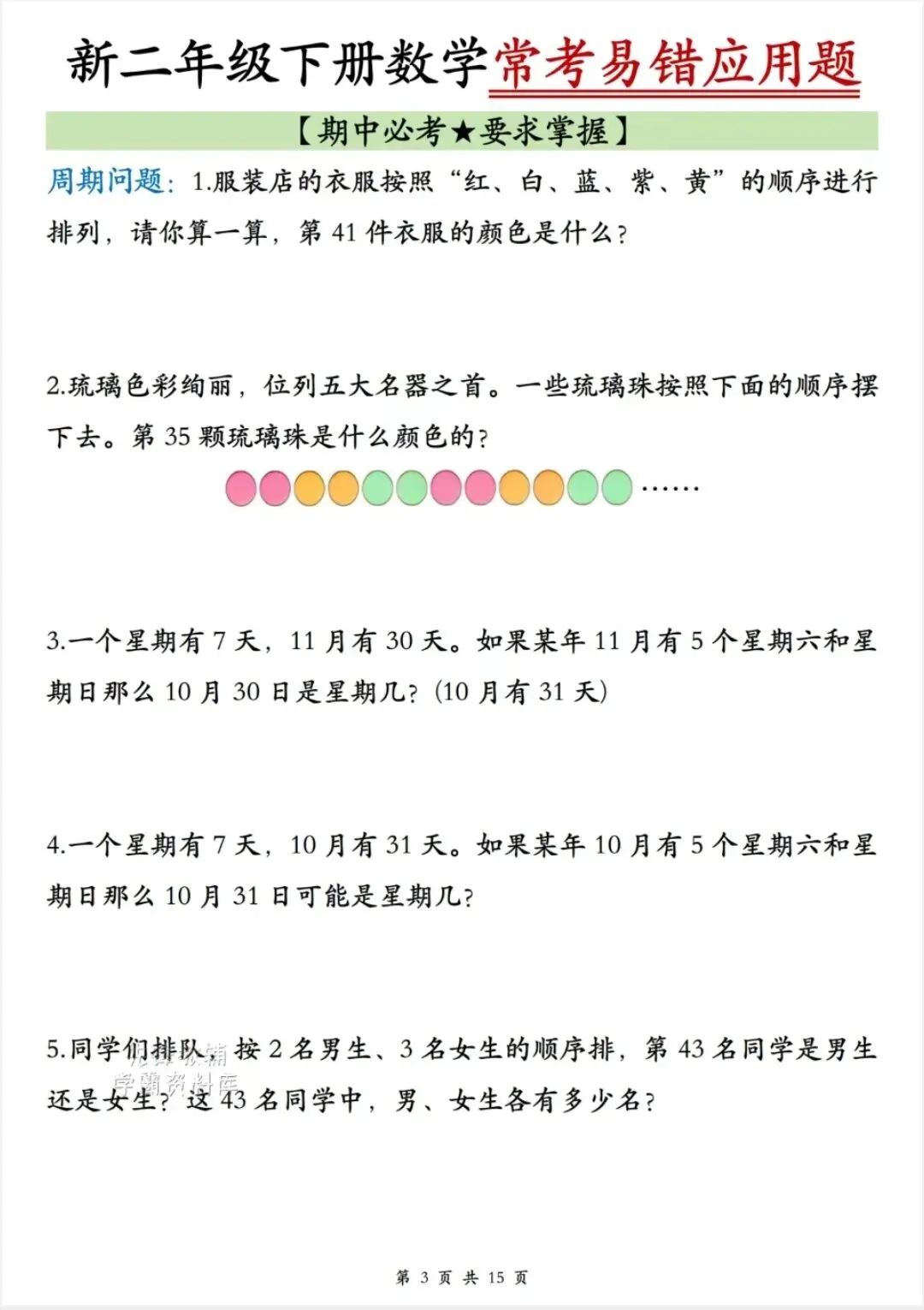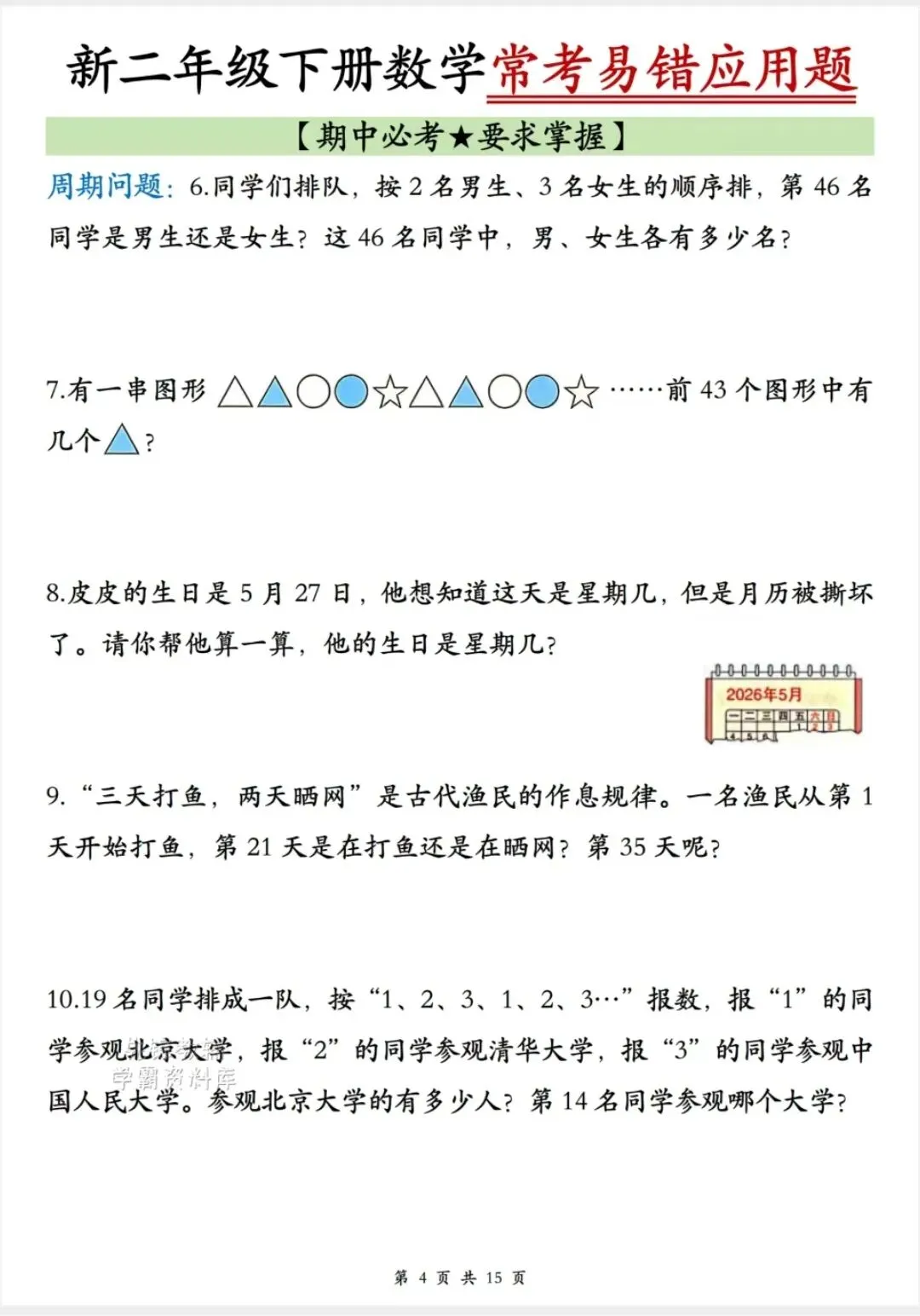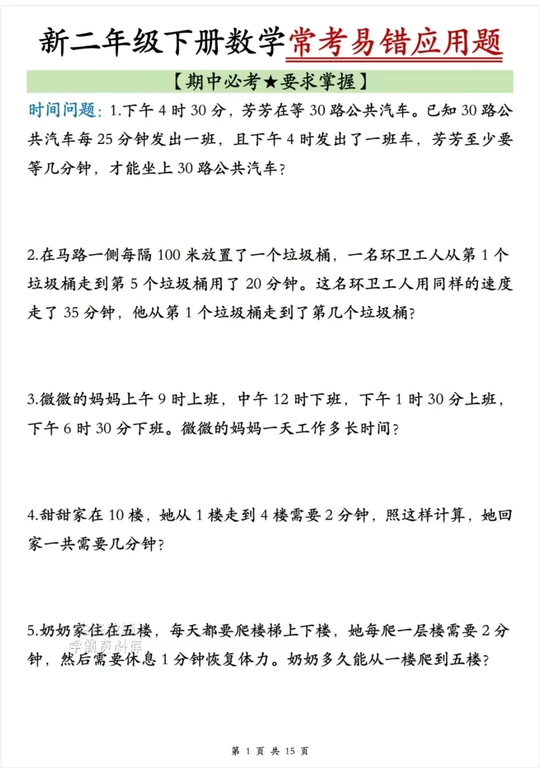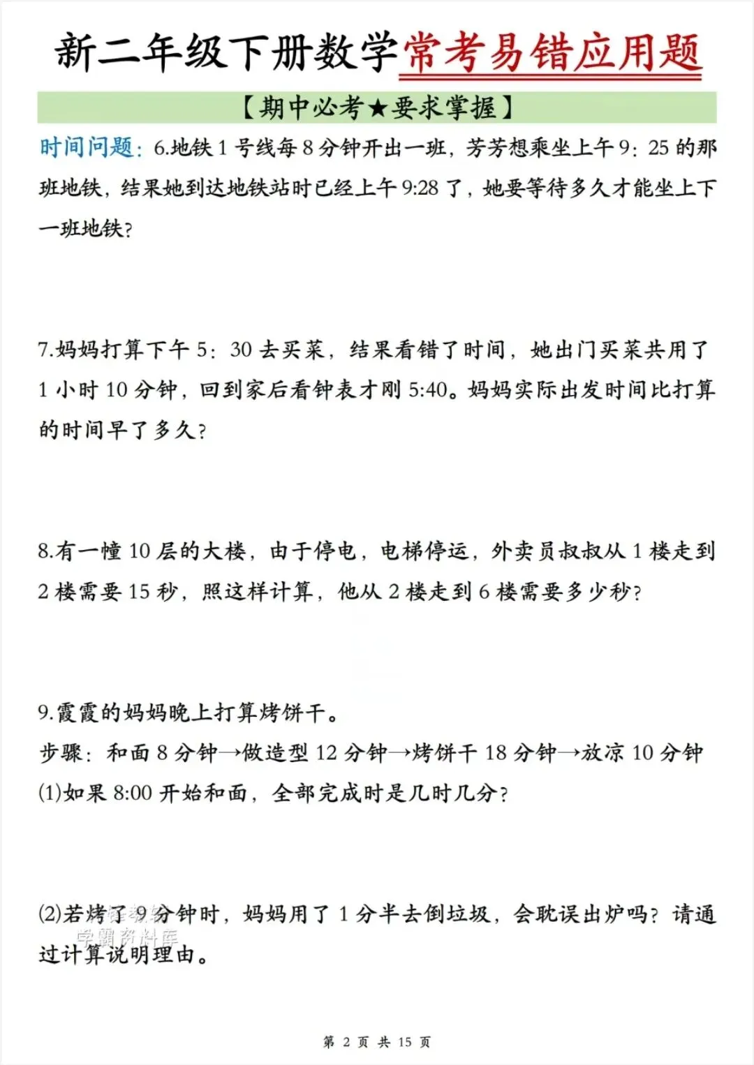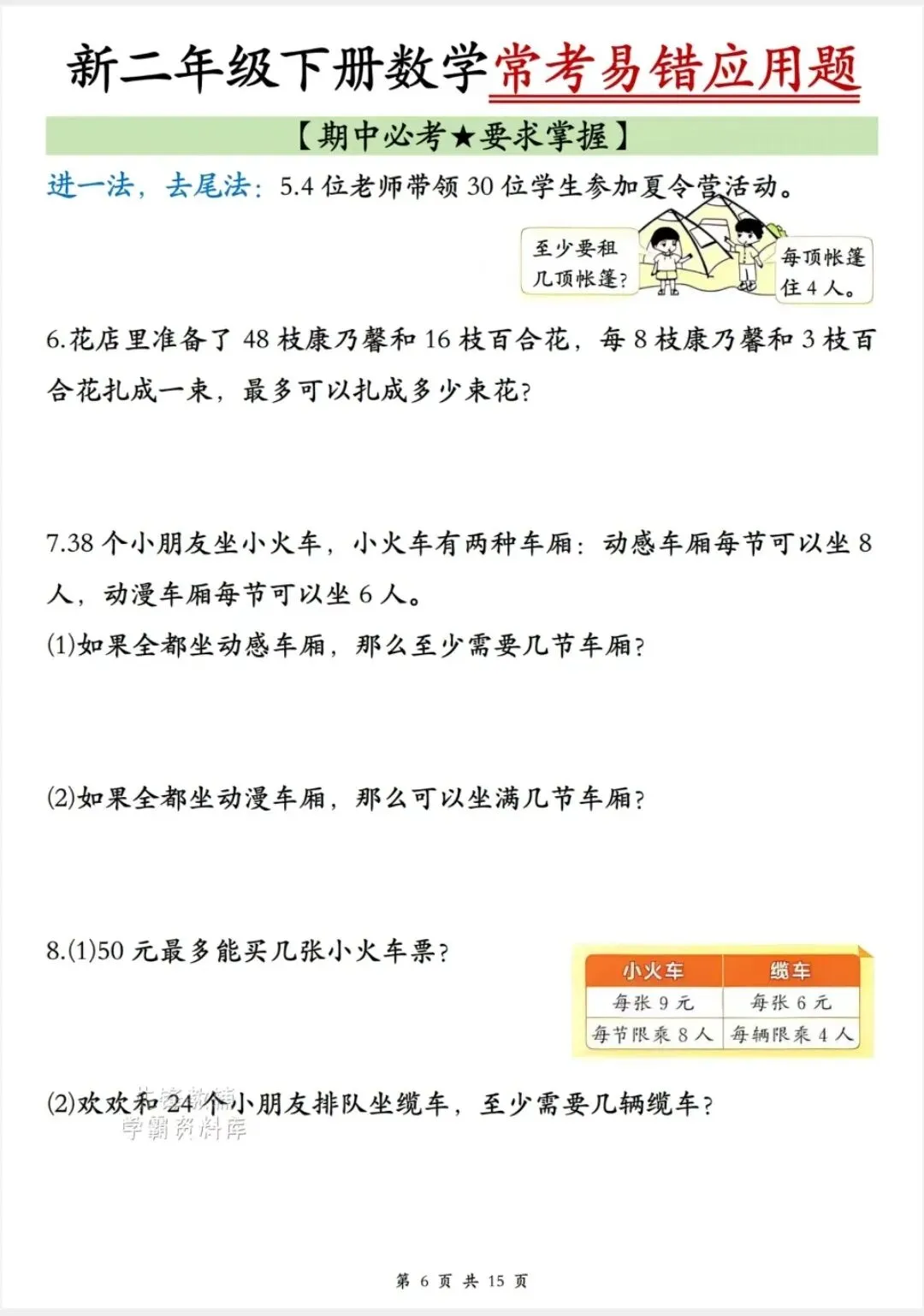2026新年二年级下册数学常考易错应用题电子版可打印