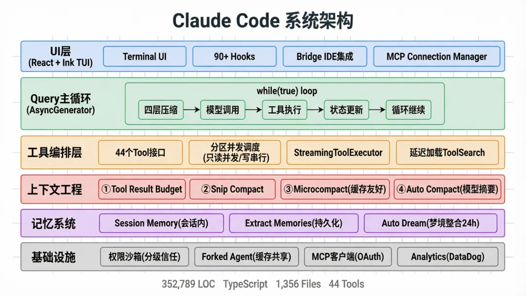 50万行代码不是过度工程——每一行都在解决一个真实的问题。四层上下文压缩解决了”对话过长”的问题;Forked Agent解决了”子Agent成本过高”的问题;分级权限解决了”安全与效率的矛盾”。