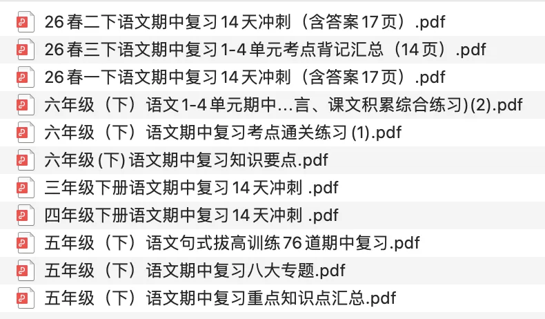 📚期中复习救星!小学1-6年级语文资料包来啦!