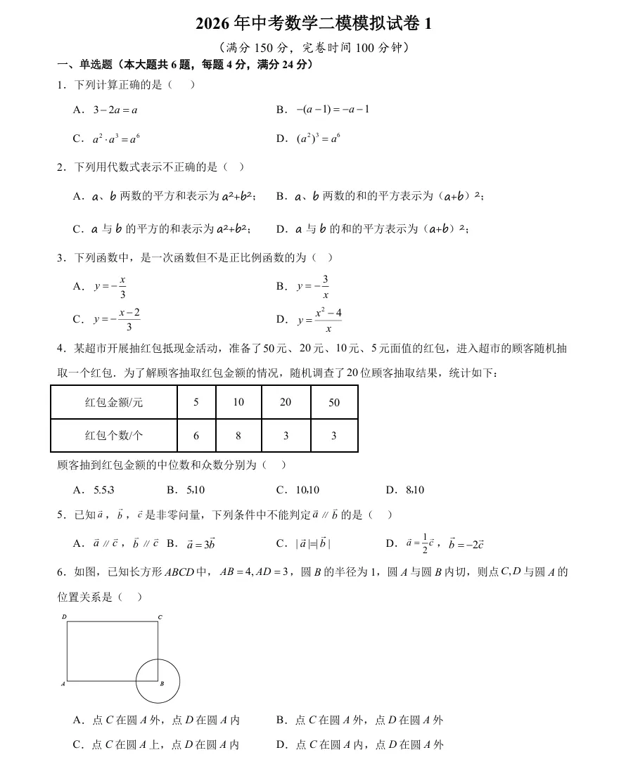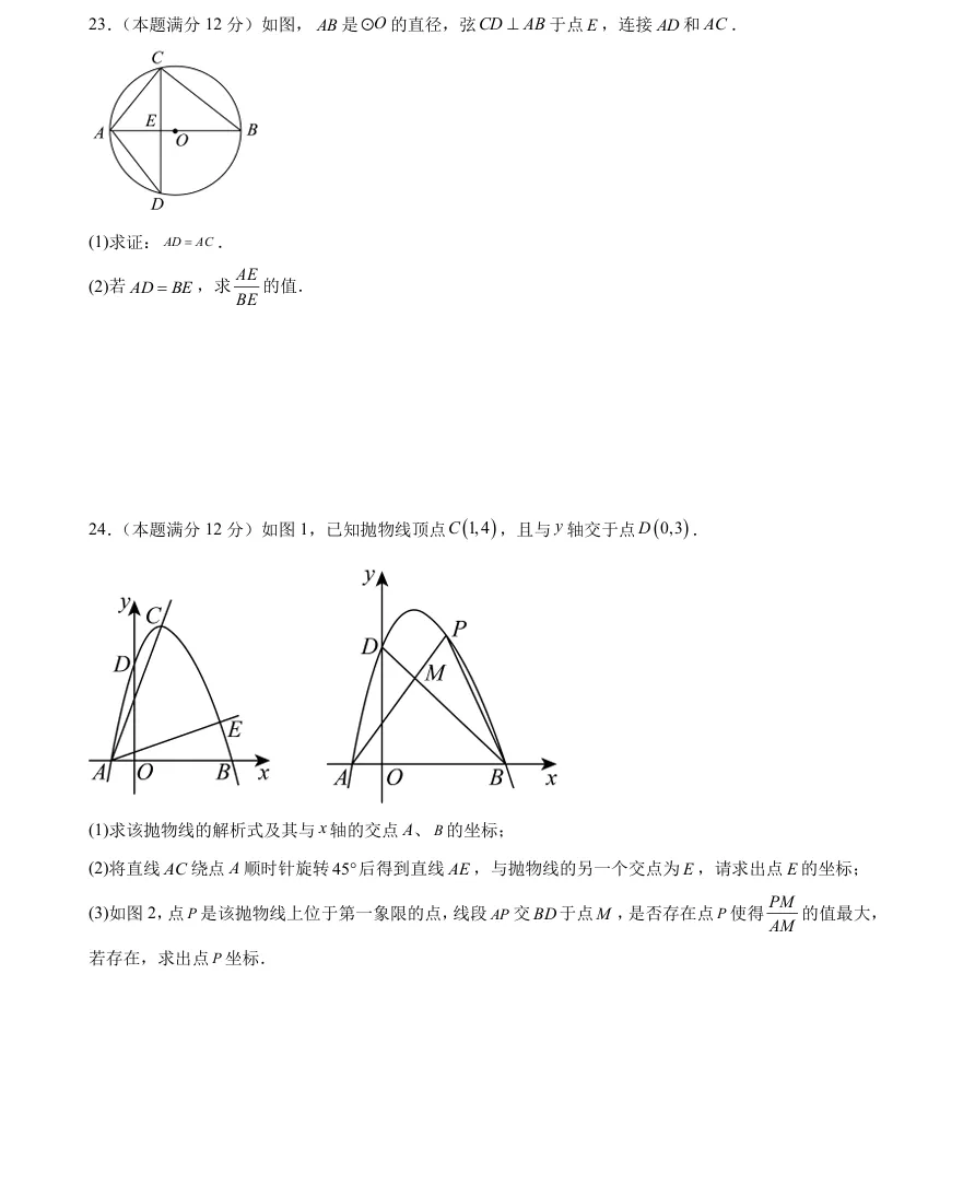 收藏!上海初三二模数学模拟卷+详细解析,可打印!