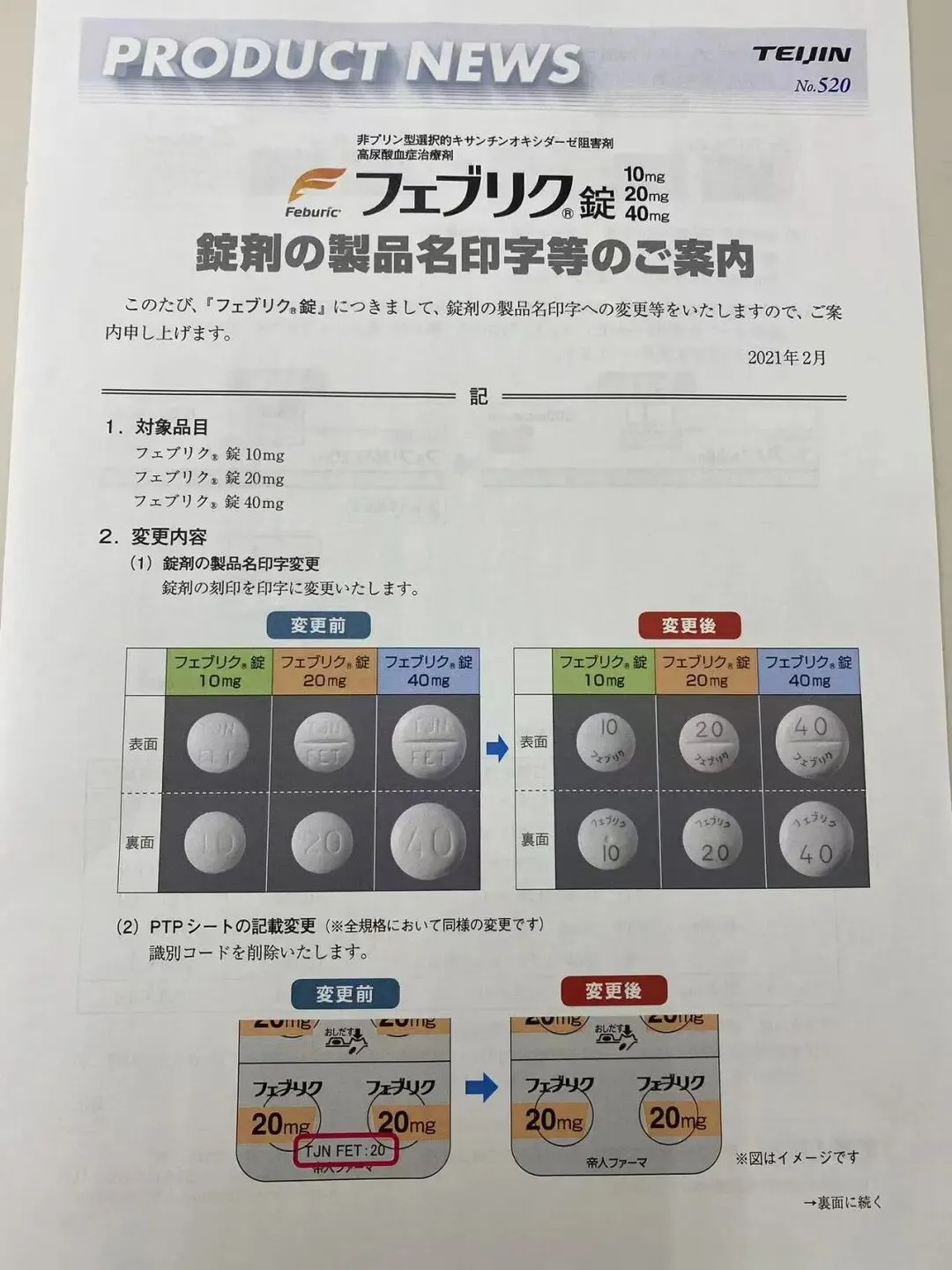日本的痛风药也是全球唯一一款对肾脏无任何负担的痛风药物。痛风是由于尿酸过度生成或尿酸排泄不充分所导致的尿酸堆积而引起的。尿酸结晶会沉积在软骨、软组织、肾脏以及关节处,尤其是在关节处的沉积会引发剧烈疼痛。该药物通过抑制体内与尿酸生成相关的酶的作用,降低血液中的尿酸水平,用于治疗痛风和高尿酸血症,是全球唯一能够治愈痛风的药物。