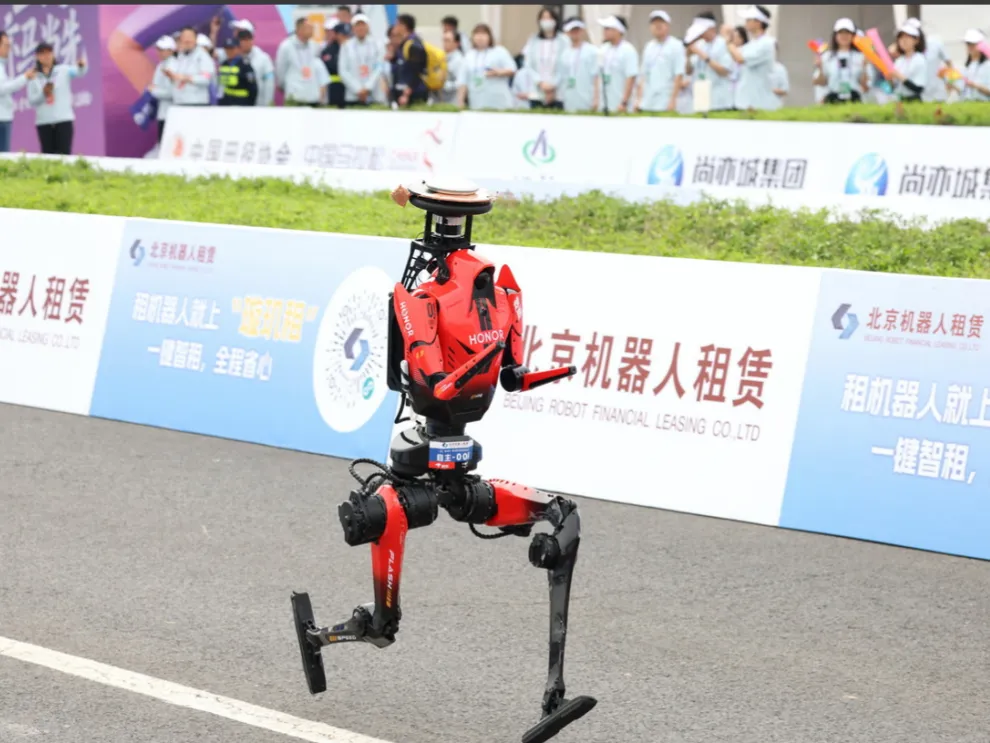 当天,一台名叫“闪电”的机器人,以50分26秒的变态成绩跑完了21公里多的半马。