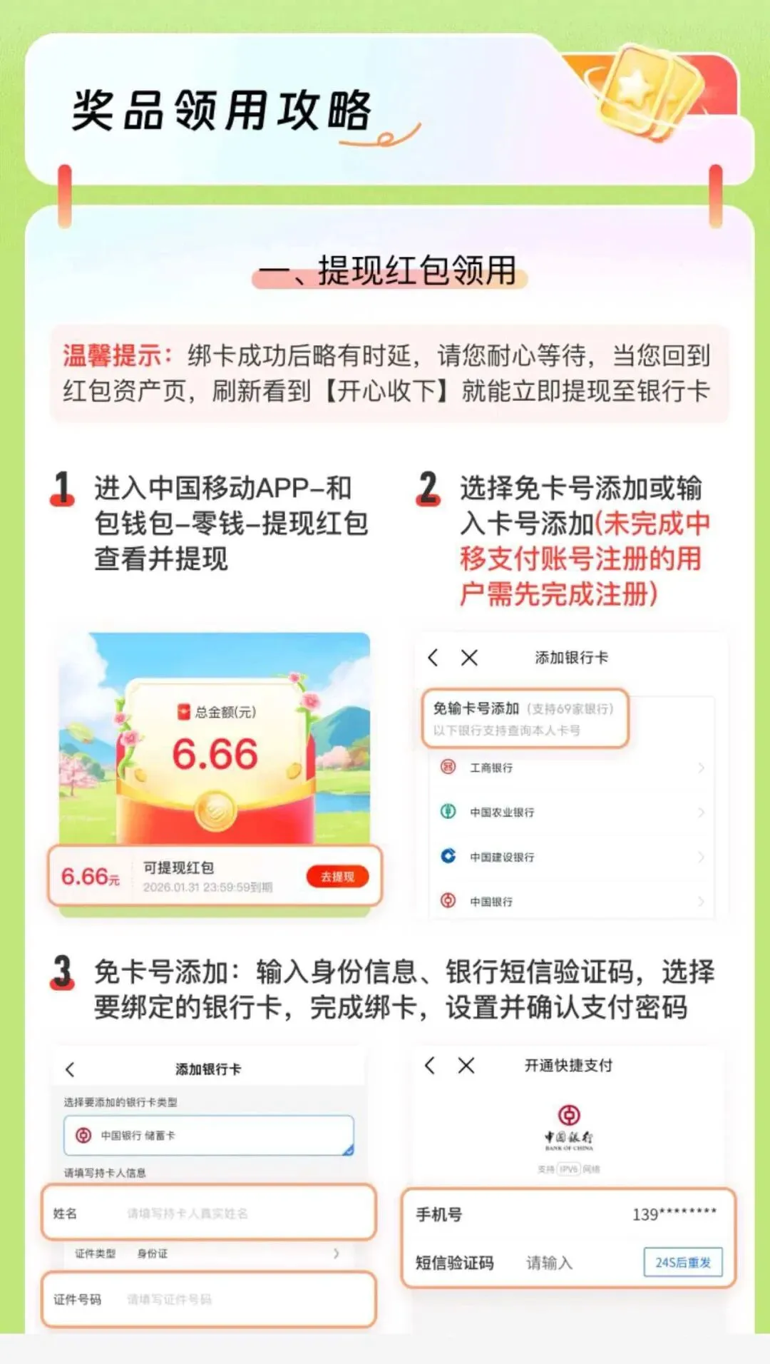 移动话费券15+移动提现红包6.66+支付宝消费金3.76=25.42