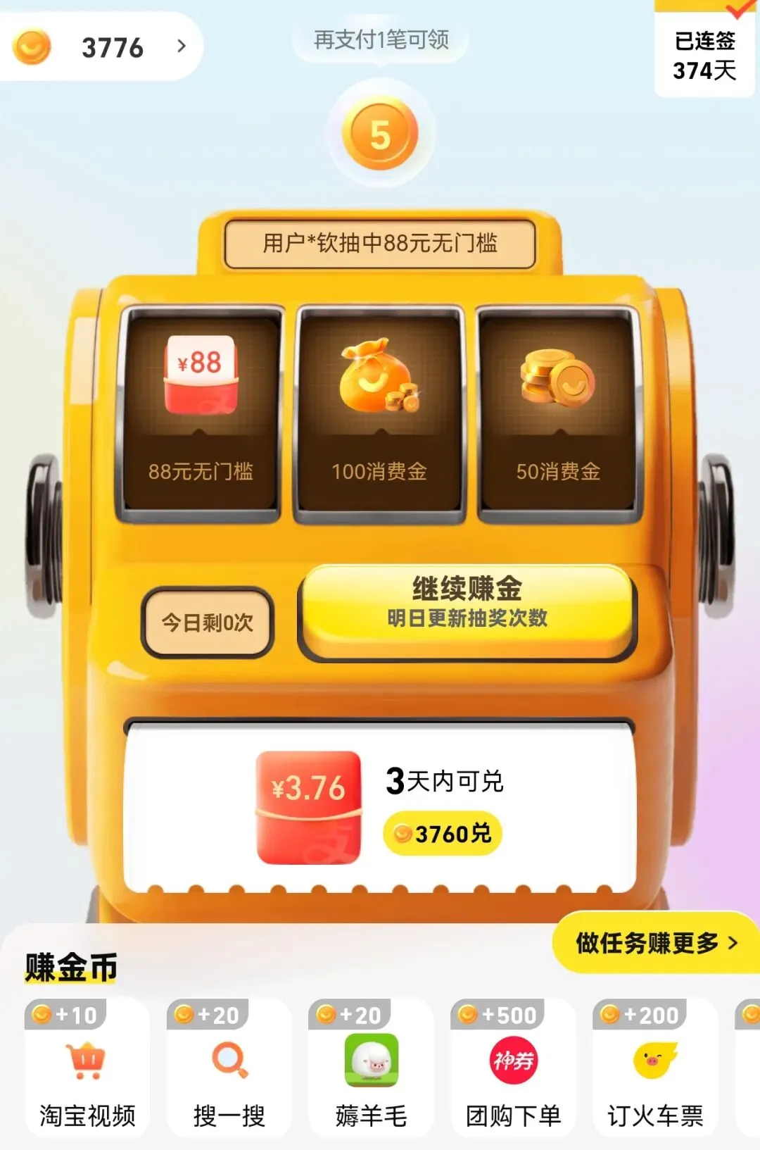 奈何消费金不够,做了3天任务才攒够,