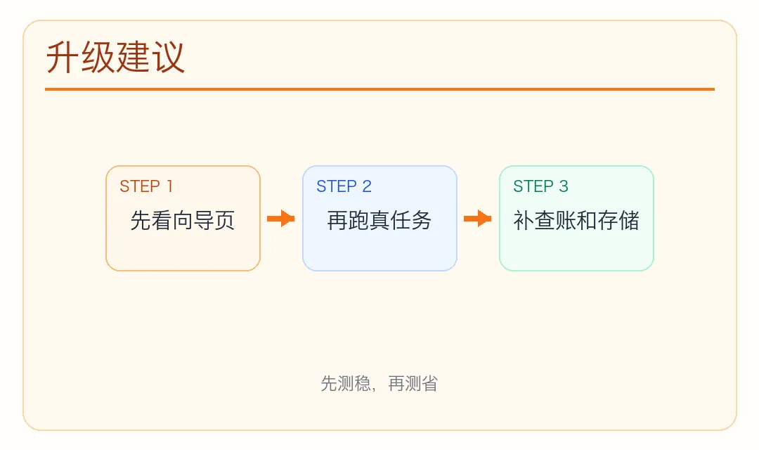 第三步,如果你是长期运行环境,升级后一定要顺手检查 会话存储和成本报告。