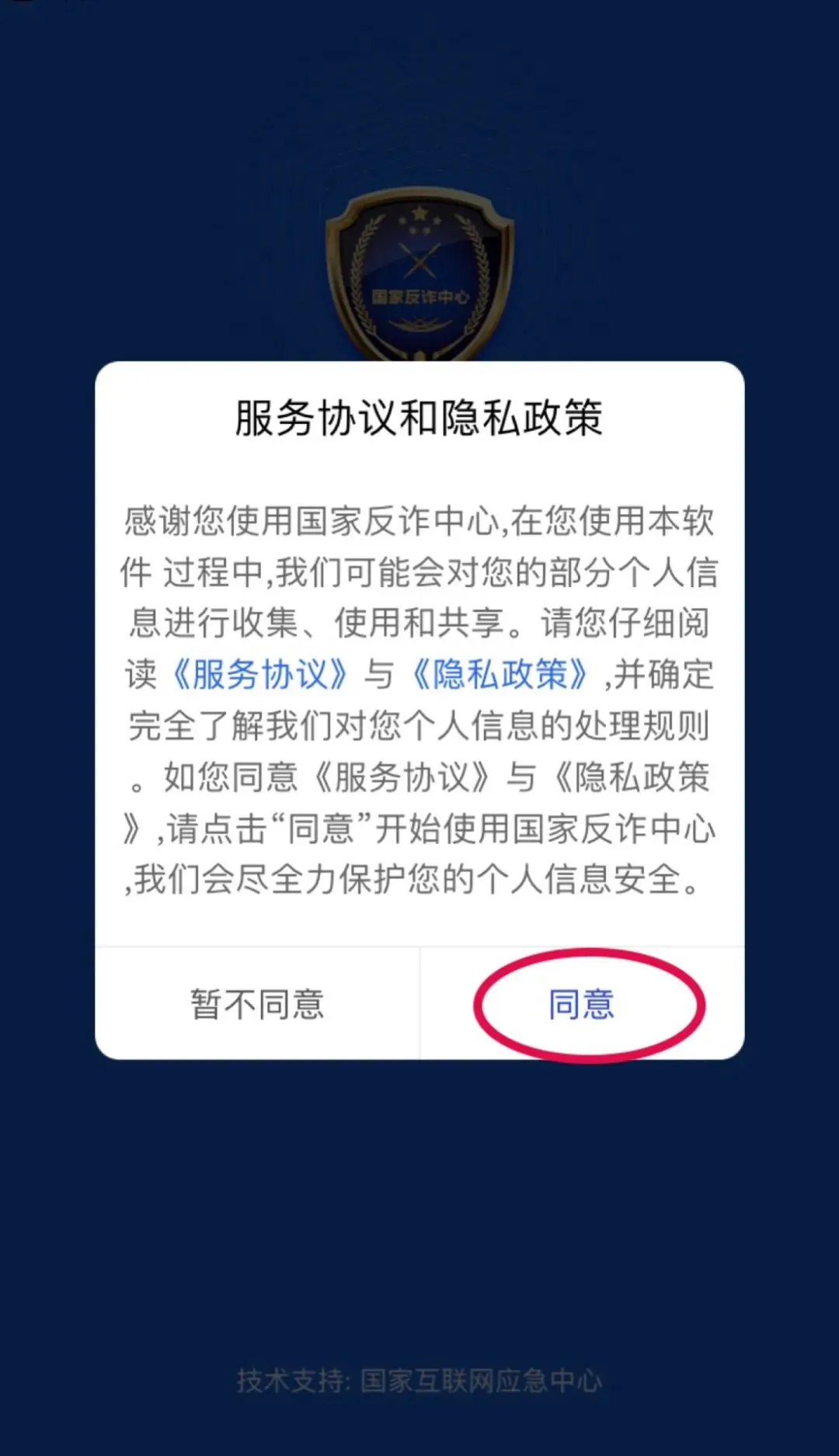 点击“同意”服务协议和隐私政策