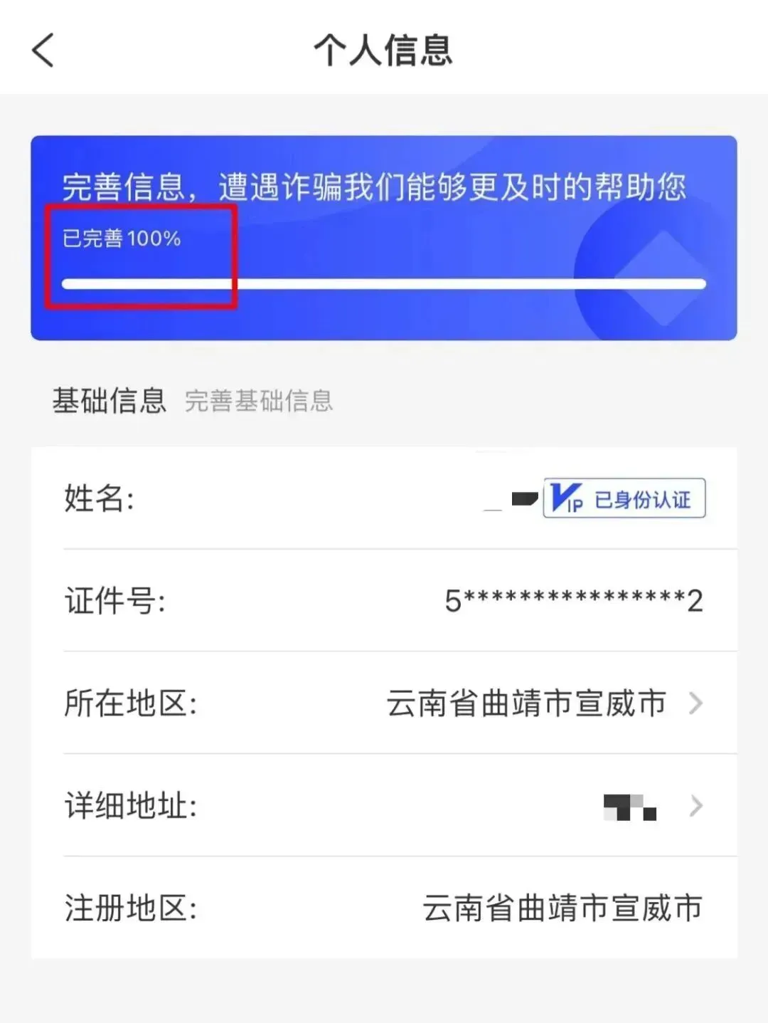 完善个人信息至100%