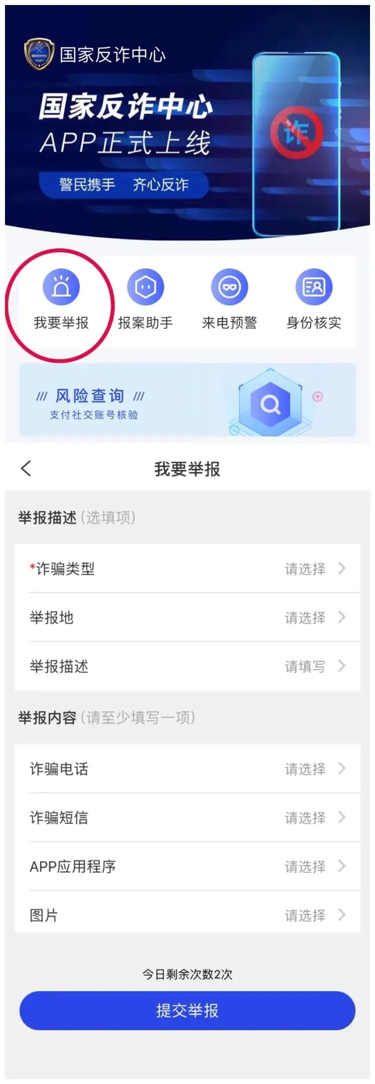 “我要举报”—遇可疑信息可快速举报