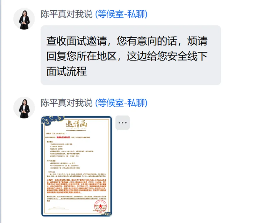 最近在观望工作机会,海投了一波简历。可没想到,比意向公司先找到我的,是诈骗犯。就在刚刚,我接连遭遇了两起套路相似的钓鱼诈骗,今天就把亲身经历分享给大家,帮大家避坑!