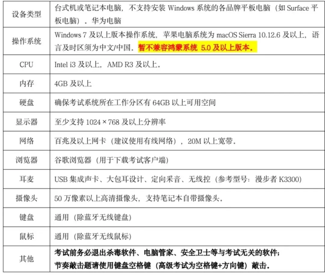 为保证音基考试时的收音和录音效果,建议使用设备自带的有线耳机考试,不可
