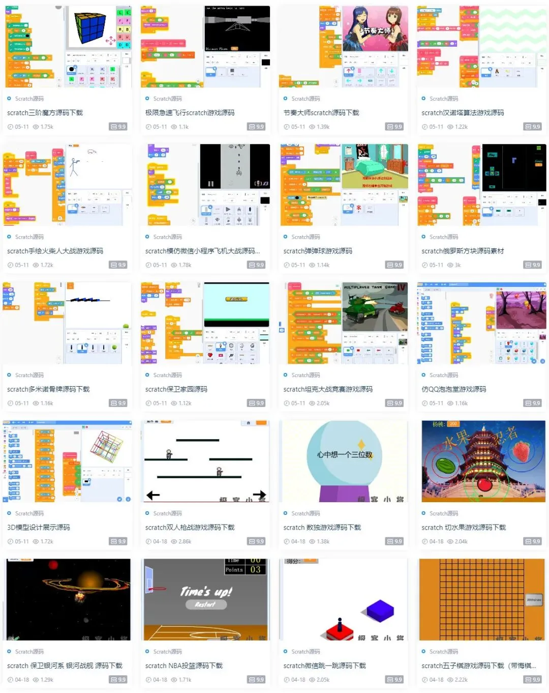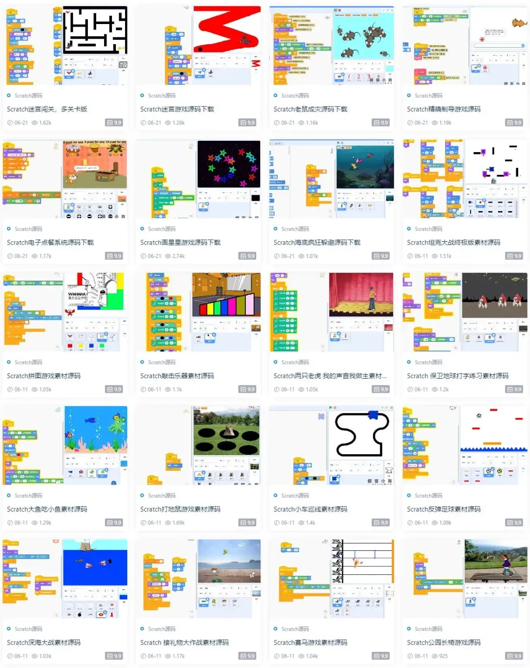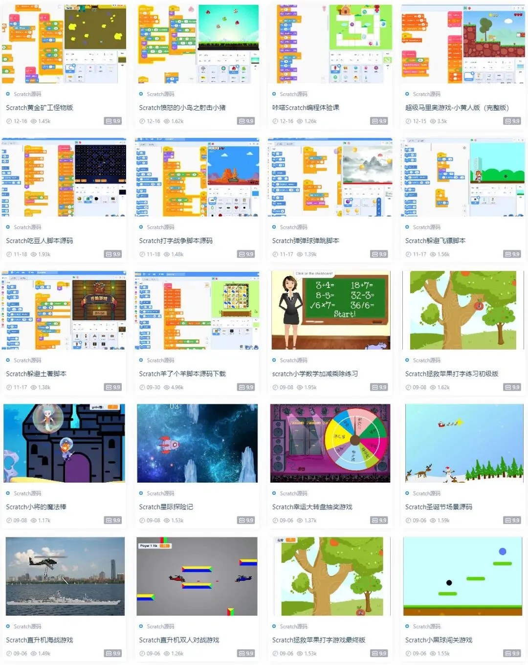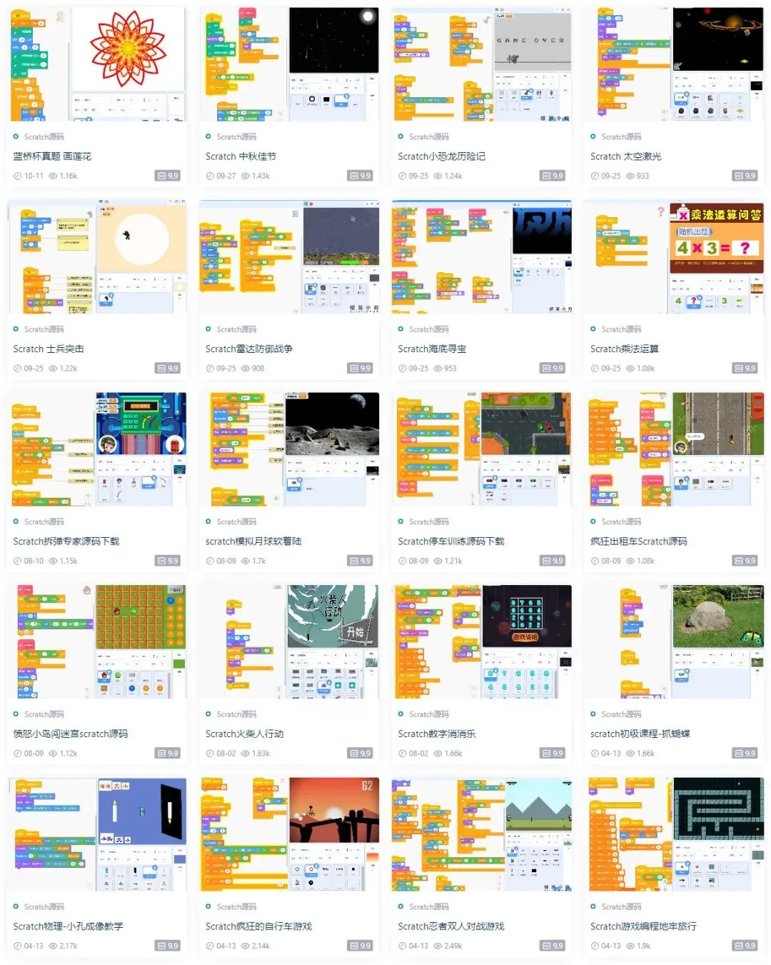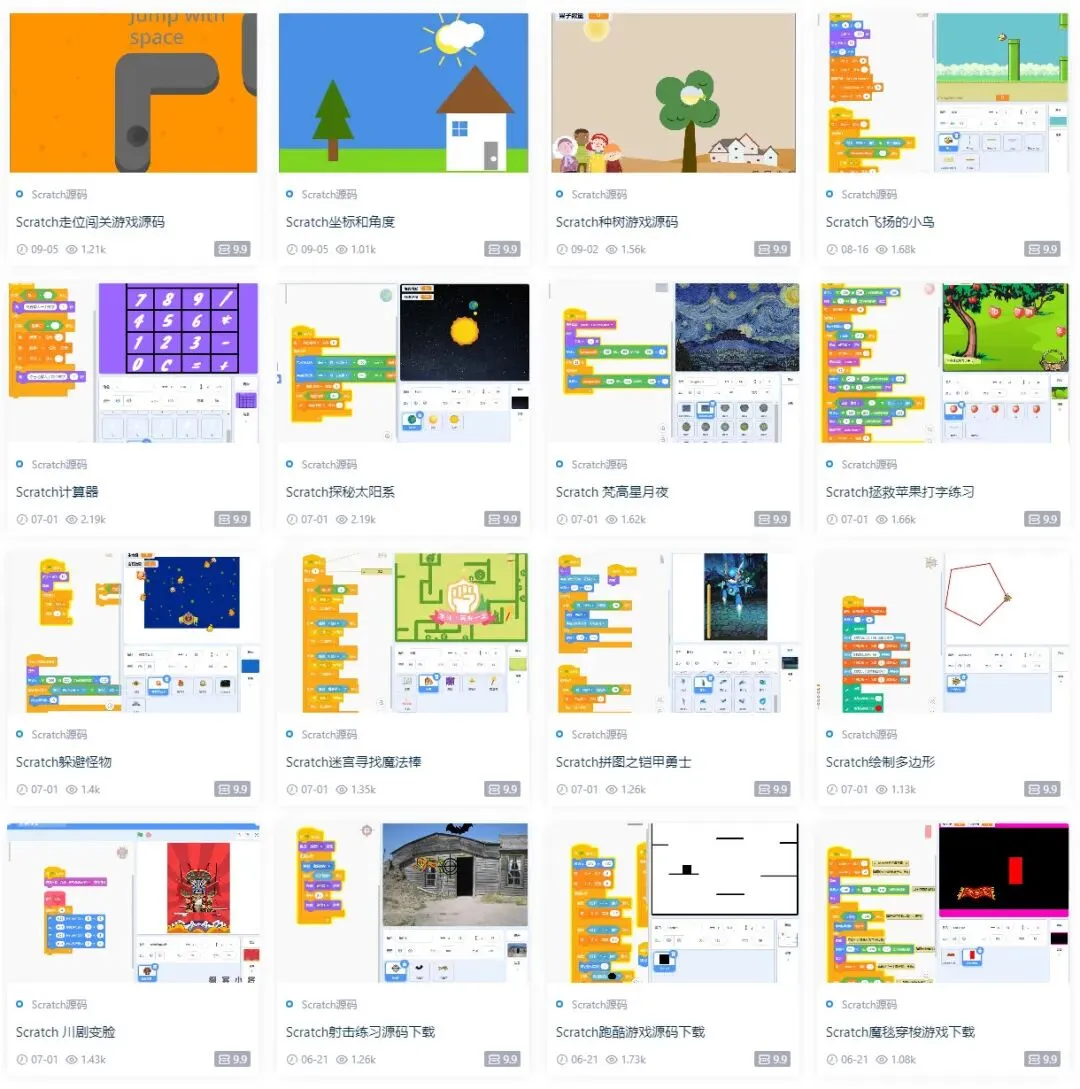 适合Scratch教学用的数学编程49套,物理编程58套,音乐、美术等以及历年真题,电子书、节日源码等