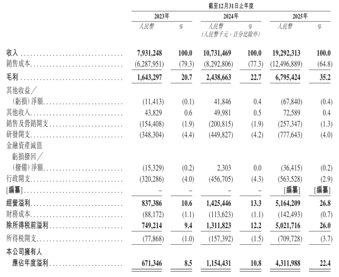 胜宏科技近年来的财务表现堪称惊艳。根据公司披露的财务数据,2023年至2025年,公司营业收入分别为79.31亿元、107.31亿元和192.92亿元,2025年同比增长达79.77%。归母净利润更是从2023年的6.71亿元飙升至2025年的43.12亿元,同比增幅高达273.52%。这一增长速度远超行业平均水平,主要受益于AI计算相关应用的强劲需求。