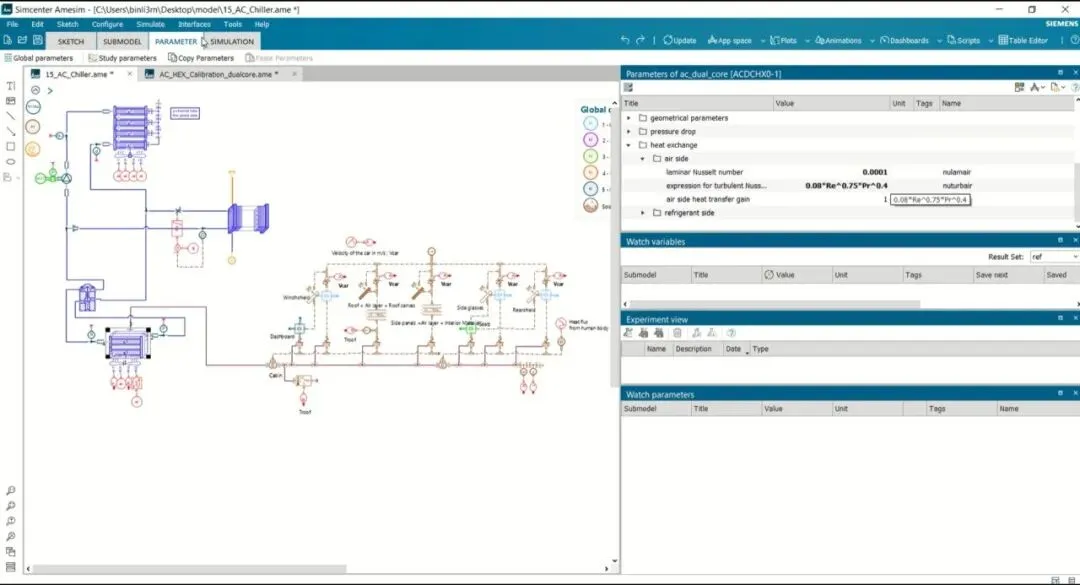 Simcenter Amesim 采用基于组件的建模方式,面向多领域物理系统的系统级仿真。软件通过连接预定义的物理组件(如泵、阀、换热器、电机等)构建系统模型,支持机械、液压、热、电气及控制系统之间的耦合分析。