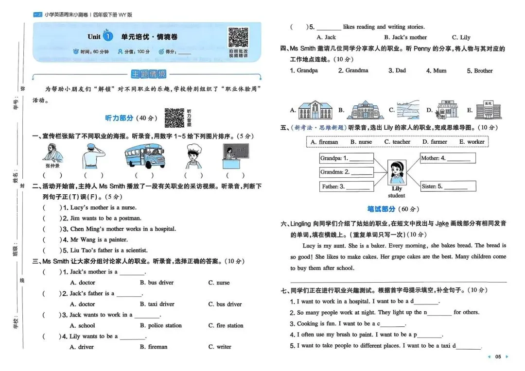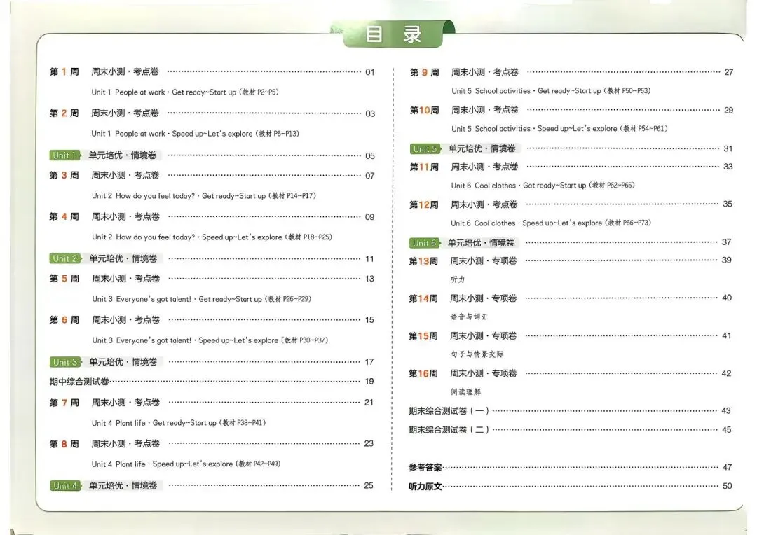 大家好,我是七宝妈,专注于1-9年级教育教学资源分享,今天给大家分享的是:专项练习|26春 小学英语 外研版《一本周末小测卷》四年级下册,PDF电子版资料可下载打印。文章末尾点击“阅读全文”可直接领取,欢迎收藏和下载。如果觉得这份资料不错,建议分享到班级或年级群,让其他家长也打印出来,帮助孩子学习;如果觉得合适,请支持正版!