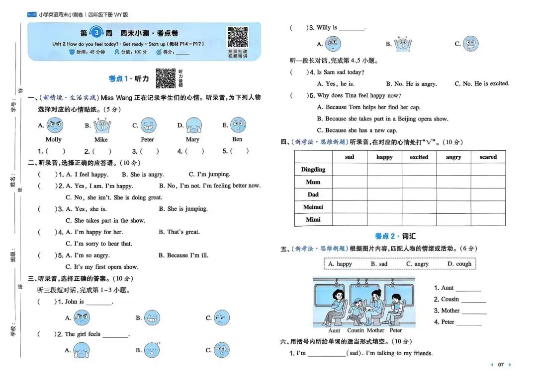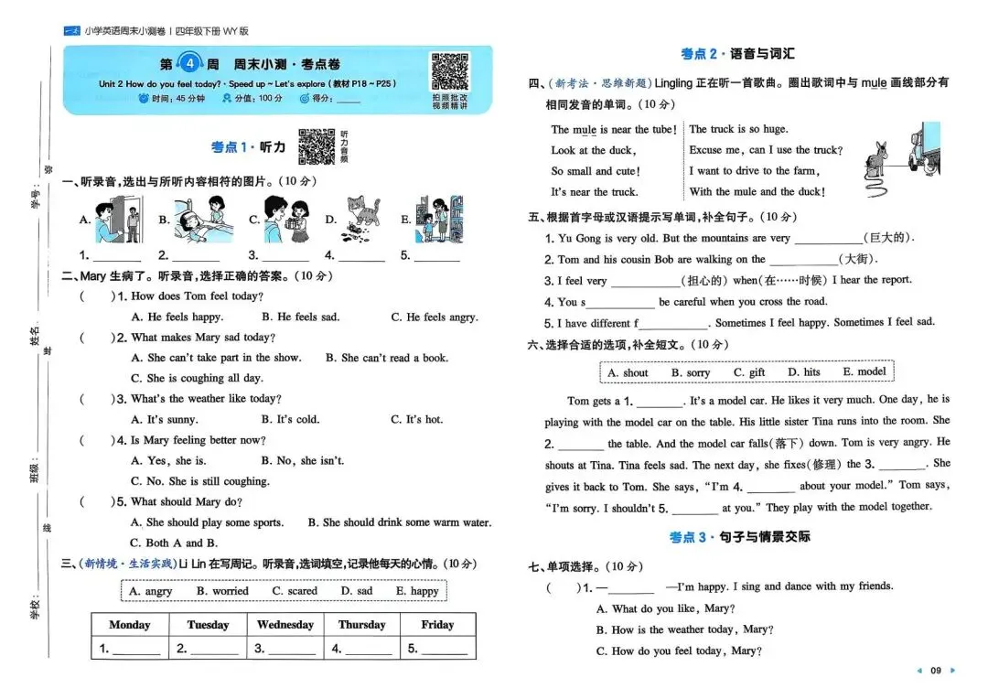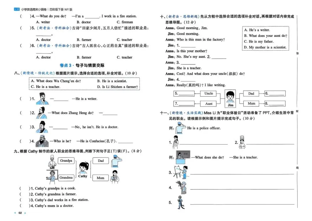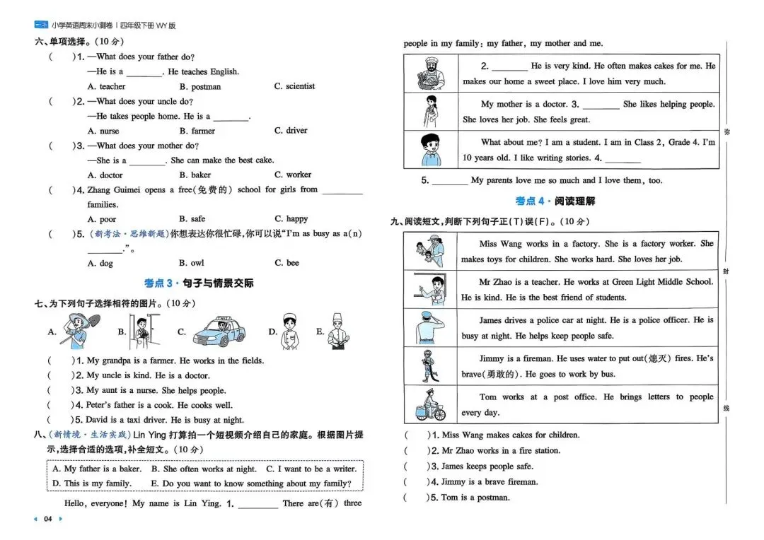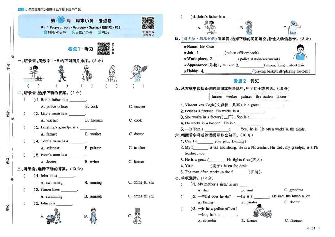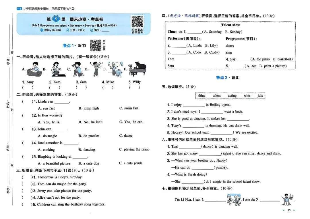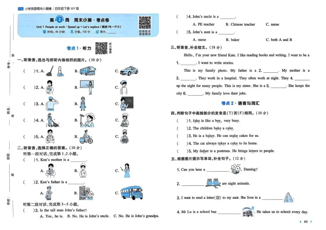 专项练习|26春 小学英语 外研版《一本周末小测卷》四年级下册 ,附链接可下载打印-拷贝
