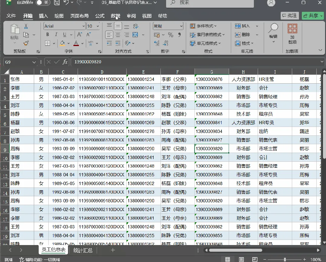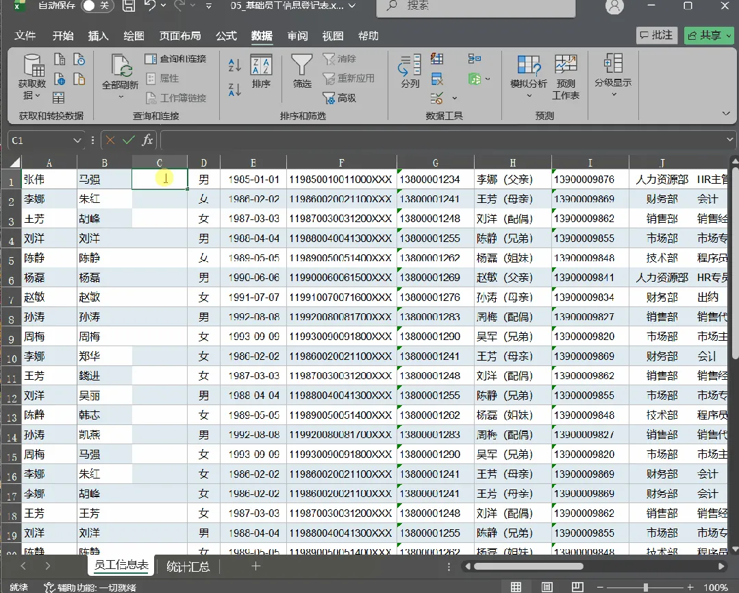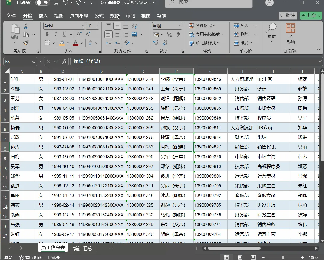 场景一:HR整理员工名单