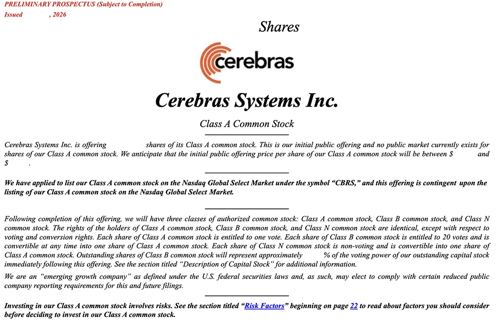 如今,Cerebras重启上市路。据外媒报道,该公司IPO计划于5月中旬进行,目标募资超过30亿美元(约合人民币205亿元),并寻求至少350亿美元(约合人民币2386亿元)估值。