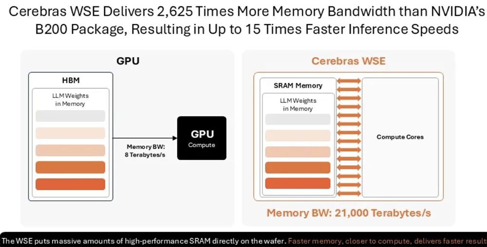 Cerebras强调自家产品的核心优势,是在需要实时响应的场景里推理速度快,远超英伟达GPU。