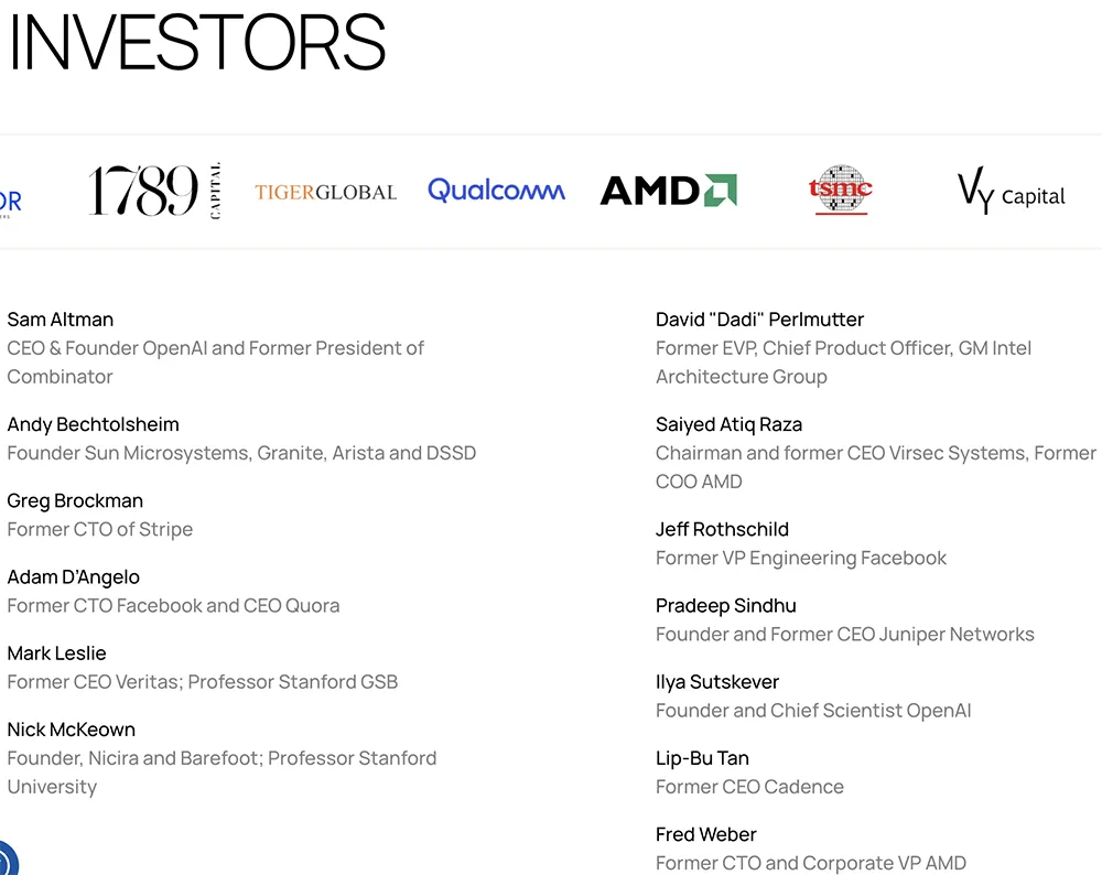官网显示,高通、AMD、台积电等芯片巨头,特朗普长子担任合伙人的1789 Capital,以及OpenAI联合创始人兼CEO Sam Altman、英特尔CEO陈立武等知名企业家,均是Cerebras的投资方。