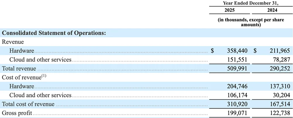 分业务来看,2025年,Cerebras的硬件收入占比约为70%,云服务及其他服务收入占比接近30%。