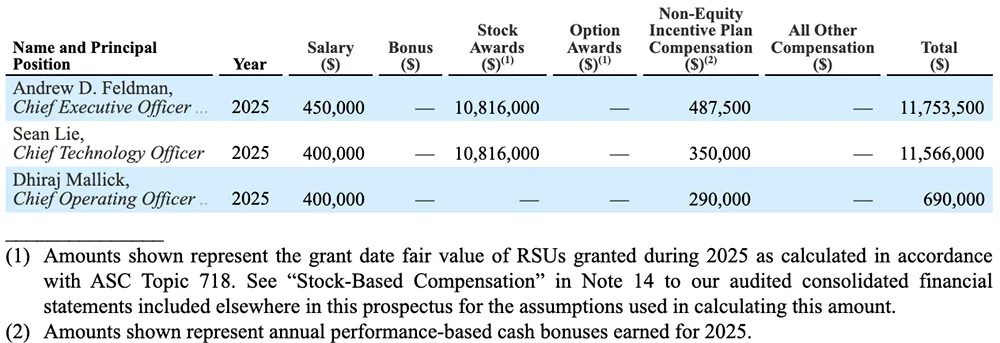 2025年,Cerebras提供给Andrew Feldman的总薪酬为1175万美元,给Sean Lie的总薪酬为1157万美元。