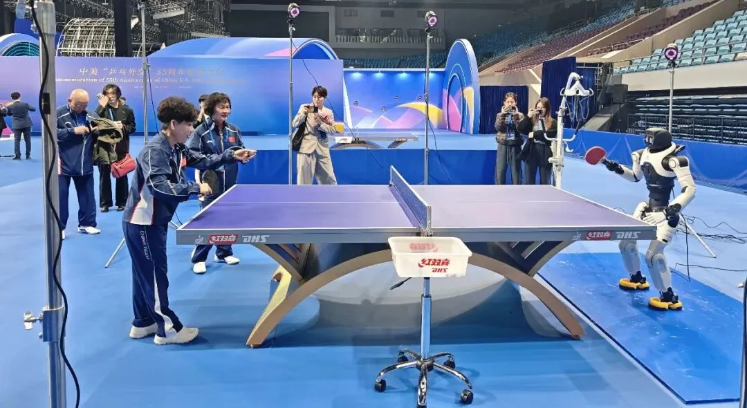 在这样的历史语境下,机器人站在球桌侧所呈现的意义,已经超越了单纯的技术演示。它既是对“乒乓外交”精神的一次当代表达,也让前沿科技以如此具象、鲜活、可感知的方式,参与到公共叙事与国际人文交流之中。