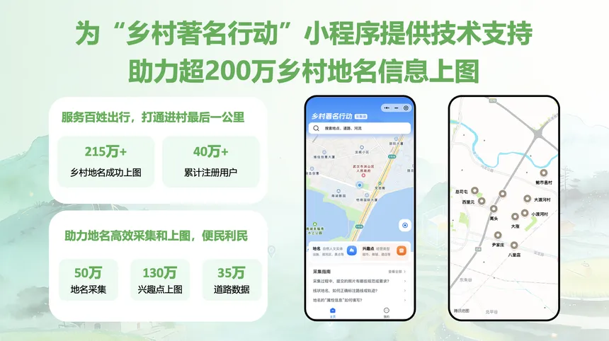 截至2026年4月,该小程序累计注册用户超40万,成功采集并规范上图215万条乡村地名信息,其中包括50万个地名、130万个兴趣点和35万条道路数据。这些数字化成果不仅有效助力“乡村著名行动”,也为乡村振兴与产业发展注入了新动能。
