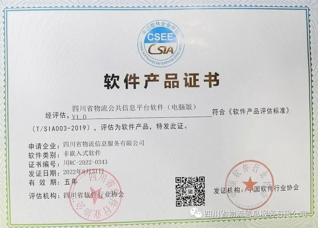 近日,由中国软件协会与四川省软件协会联合评选的四川省软件产品评估公示了入选名单,信息公司自主开发的“四川省物流公共信息平台软件”(电脑版)成功入选,成为四川省第七批软件产品。
