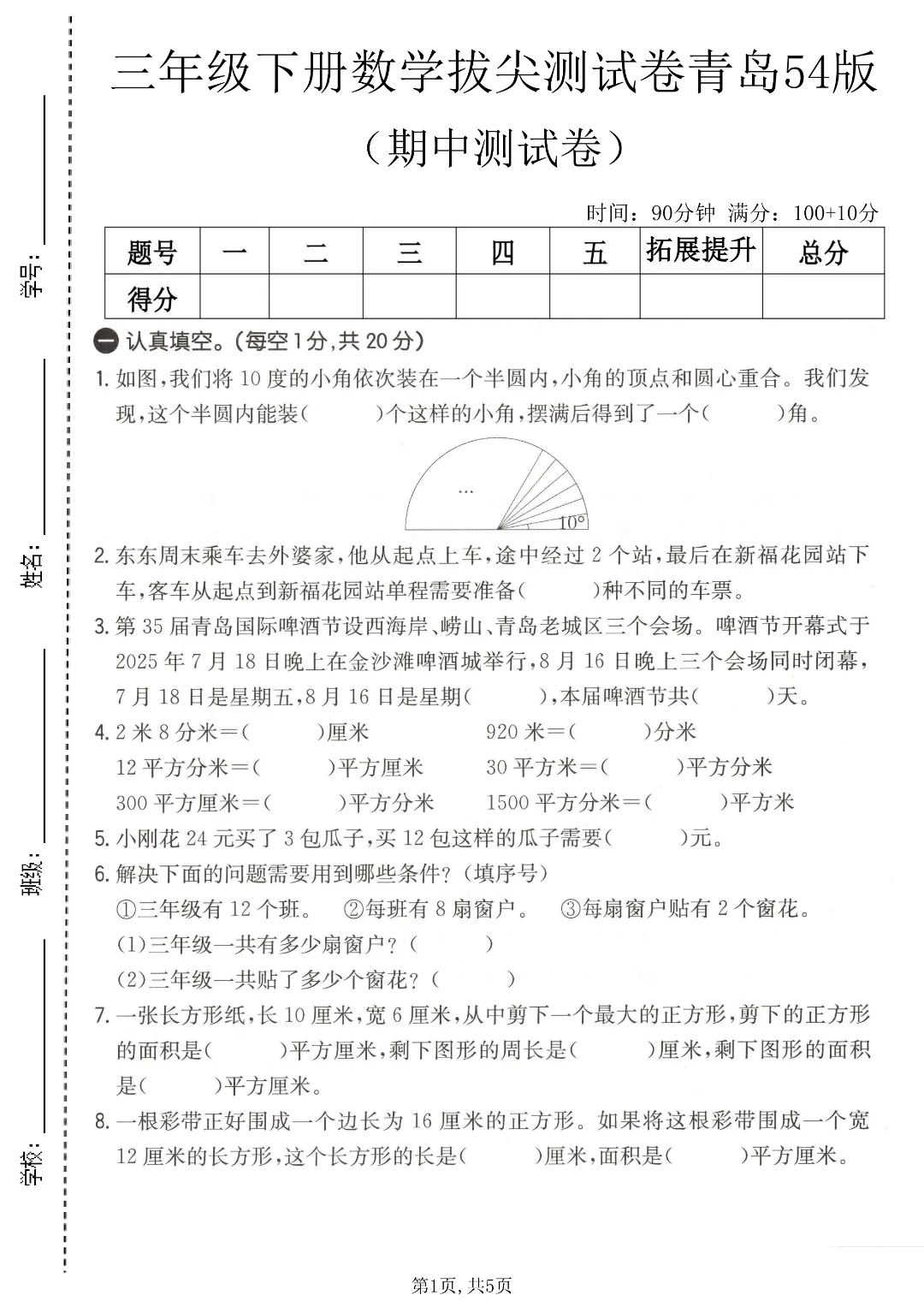 ✨今日给家长朋友们分享的是:26年春新三年级下册青岛54版数学《期中考试质量检测卷4套》附答案解析 电子版可打印
