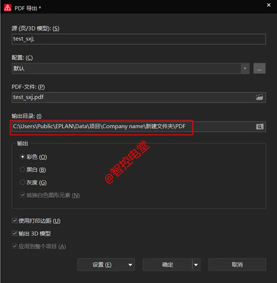 我们做好的项目图纸通常会导出PDF格式进行外发或打印;那我们知道EPLAN导出PDF默认路径为$(DOC),如下图所示;