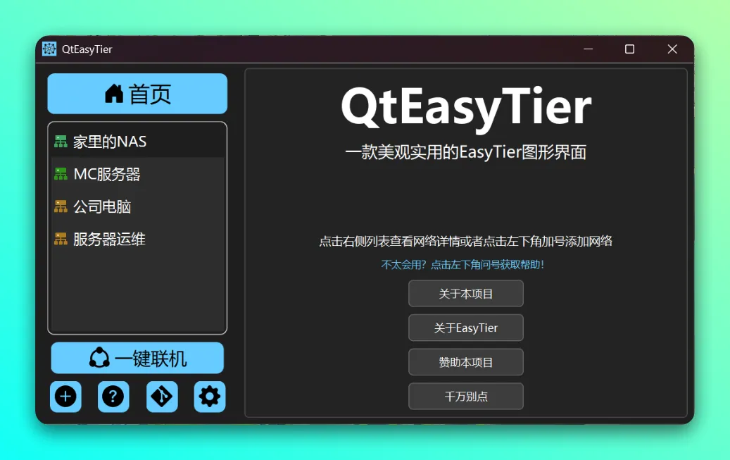 简单: QtEasyTier 支持一键联机,小白也能轻松使用。
