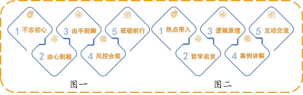 课程方式: 两个“五位一体” = 内容逻辑(图一) + 表达方式(图二)