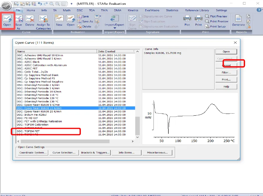 2、单击“文件/打开曲(File/Open Curve),在弹出的对话框中选中要处理的曲线,点击“打开(Open)”打开该曲线。