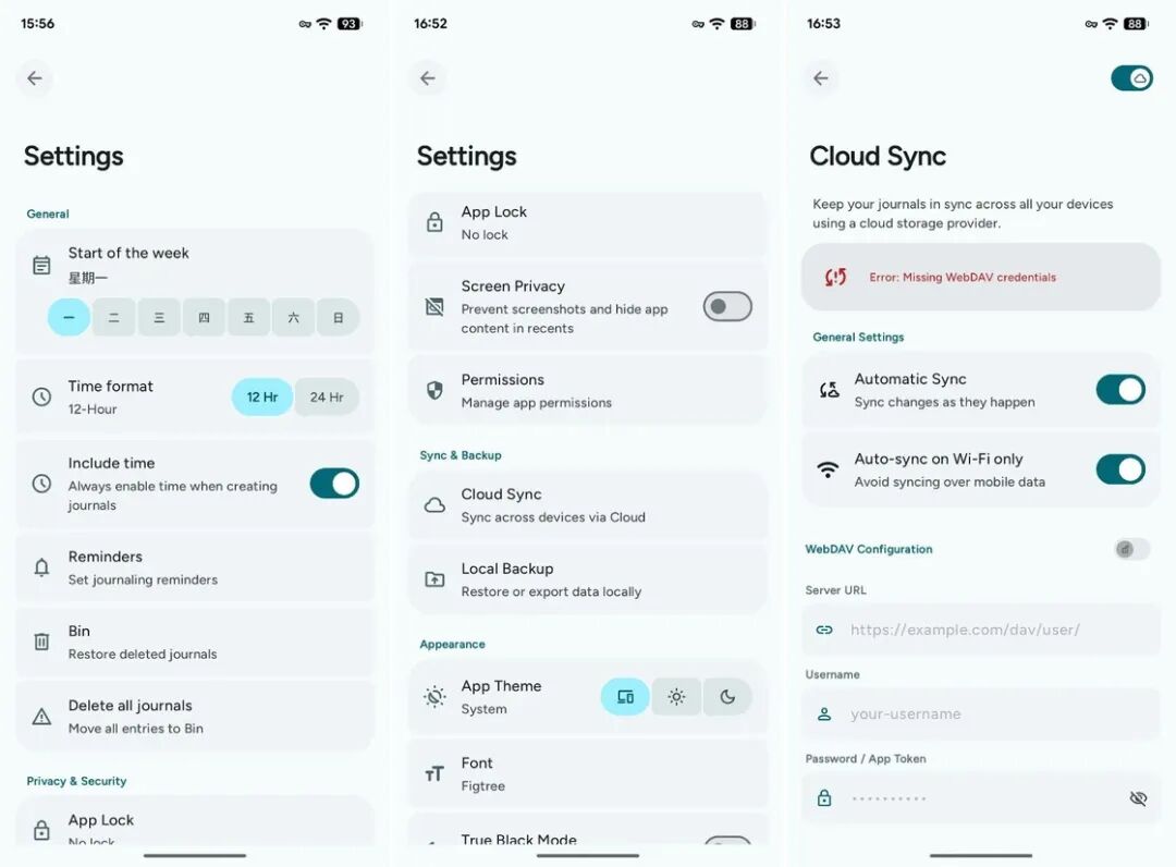 最后说到非常重要的同步功能,毕竟谁也不愿意看到倾注了情感和记忆的日记丢失。June 目前支持通过 WebDAV 同步,我们可以根据自己的习惯来选择相应的服务。如果你不希望自己的数据泄露,还可以选择本地备份的方式。