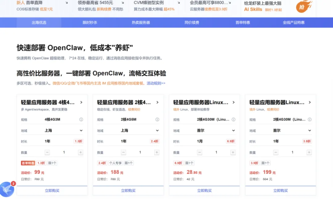 二、推荐腾讯云服务器部署,便捷配置微信或者企业微信。