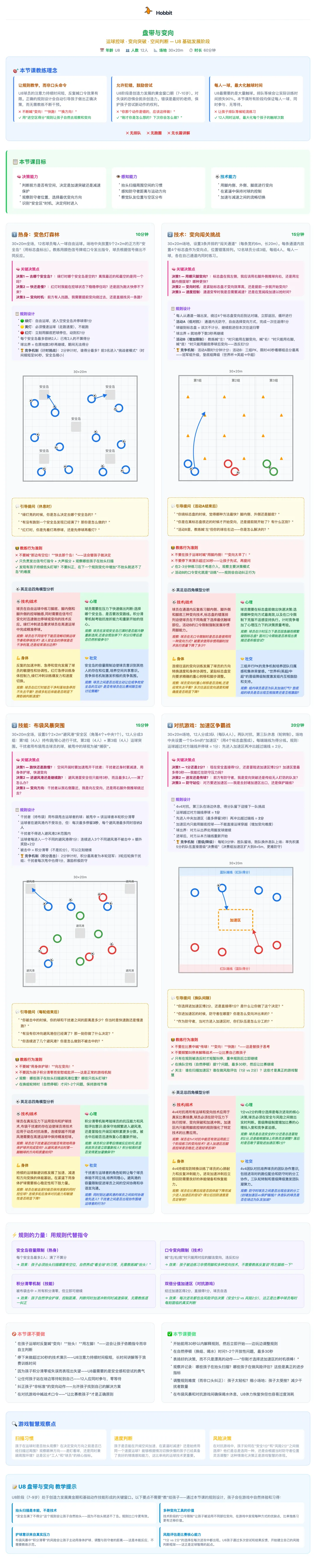 · “我这节 U8 课想练习变向,但人数只有 6 个,有什么建议?”