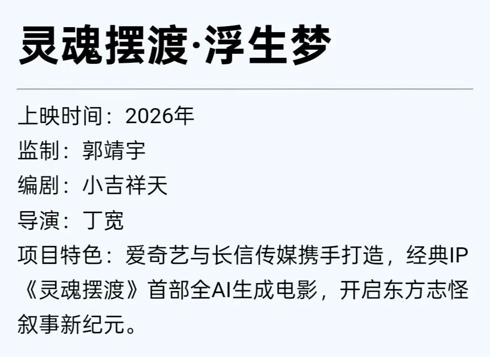 一个叫《灵魂摆渡·浮生梦》,全AI生成电影,2026年暑期档。