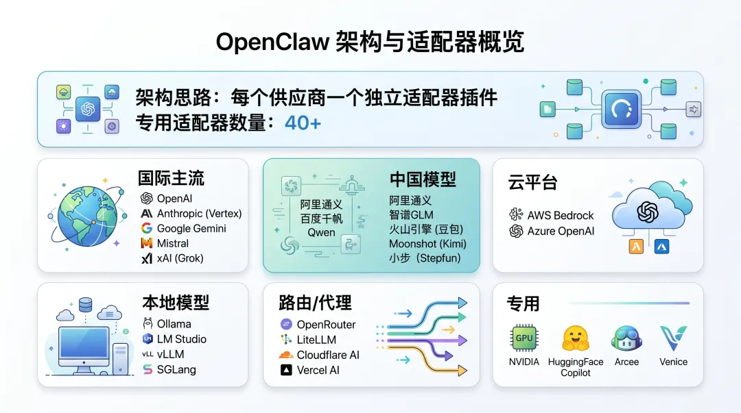 模型支持层也是同样的思路。它不是押注单一模型,而是尽量把更多模型原生接进来。