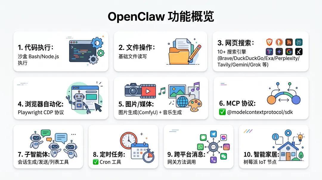 相比之下,OpenClaw 的强项不完全在“执行型工具”,而在于它把平台、渠道和媒体能力组织得更好,更像一个能落到真实产品场景里的系统底座。