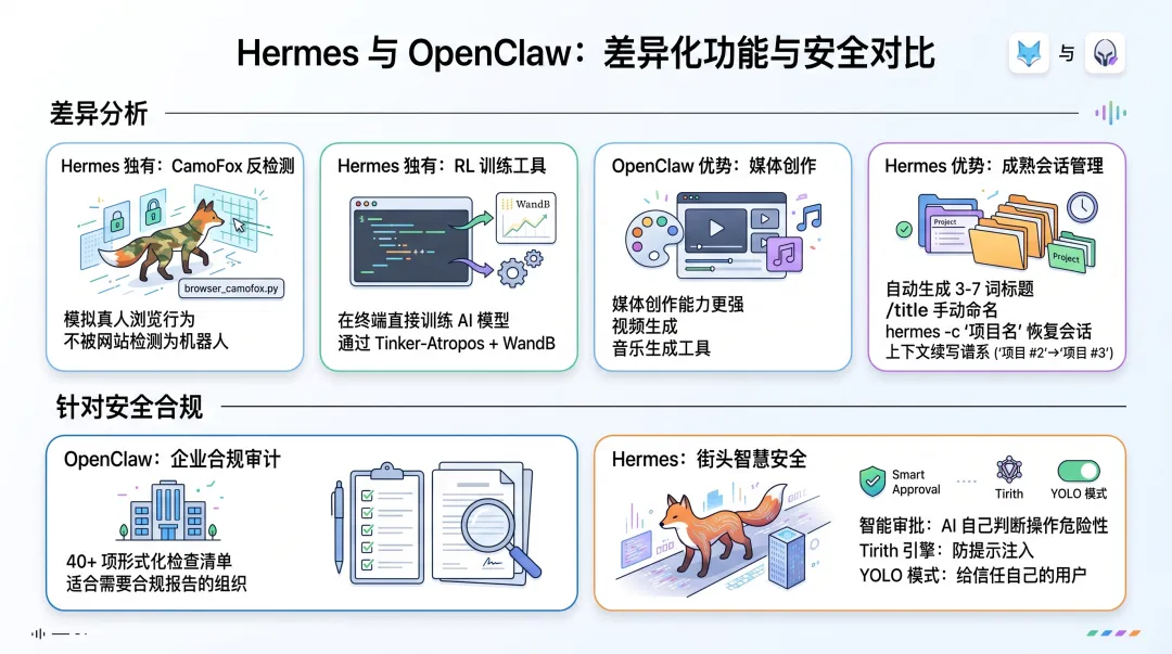 的安全体系更像企业工程,强调审计、隔离、规范、合规感 - Hermes