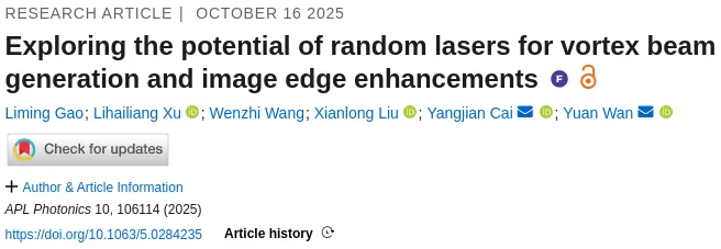 APP | 山东师范大学光场调控与应用中心:探索随机激光器在涡旋光束生成及图像边缘增强中的应用潜力